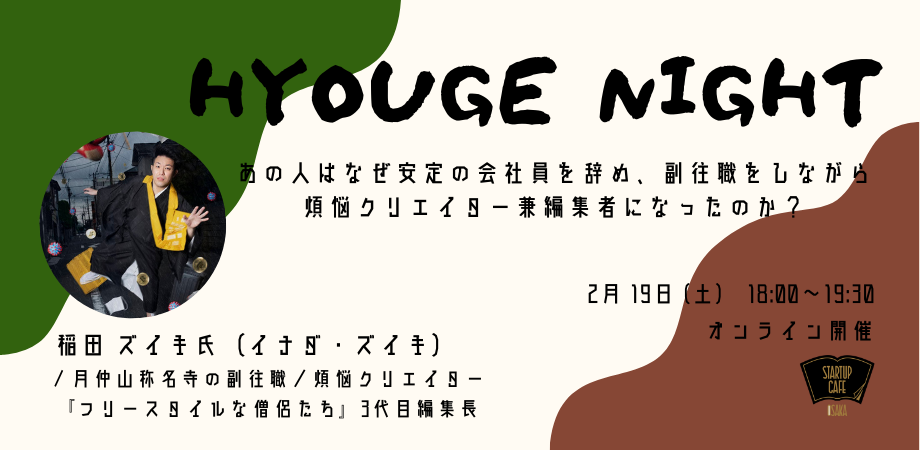 20220219【HYOUGENIGHTあの人はなぜ安定の会社員を辞め、副住職をしながら頭脳クリエイター兼編集者になったのか?】 2022/01/29 最終更新日時 : 2022/01/29 スタートアップカフェ大阪 FacebookXCopy