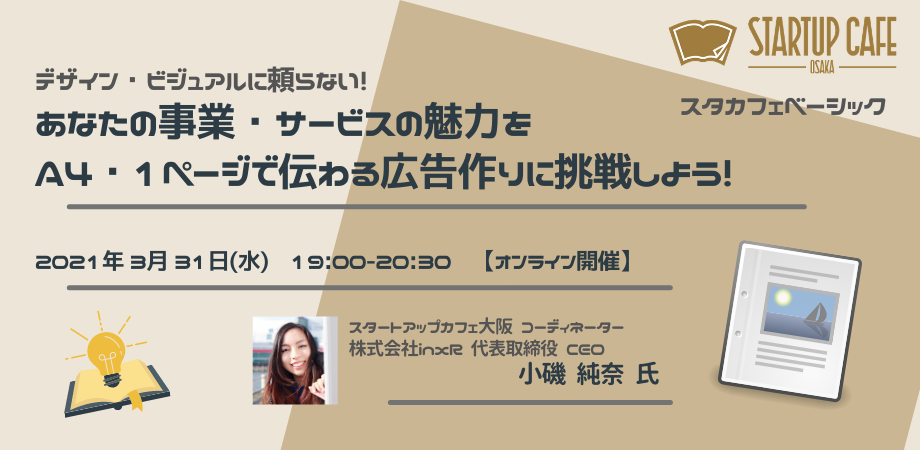 【終了】デザイン・ビジュアルに頼らない! あなたの事業・サービスの魅力をA4・1ページで伝わる広告作りに挑戦しよう!