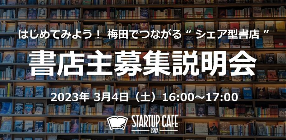 スタートアップカフェ大阪でも2023年4月から、店内の棚を使ってシェア型書店を開始するにあたり、書店オーナーを募集いたします。