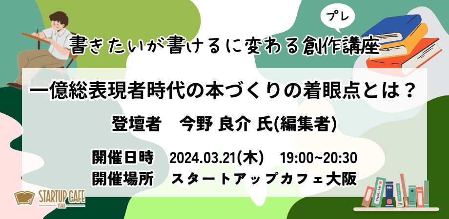 スタートアップカフェ大阪「書きたいが書けるに変わる創作講座」