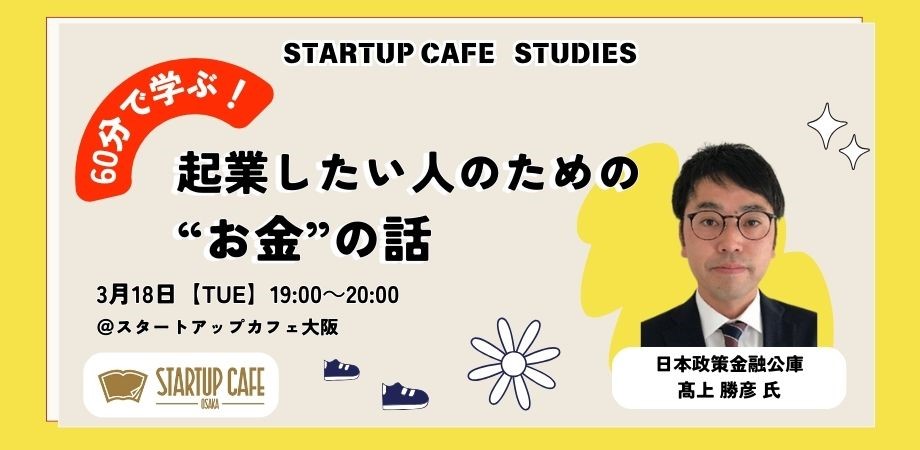 ※スタートアップやビジネスアイデア、公庫の審査に関するご相談は、スタートアップカフェ大阪のHP(https://startupcafe-ku.osaka/supportprogram/advisor/)から無料起業相談でお申込みください。毎週火曜日(16時~19時)に無料でご相談いただけます。