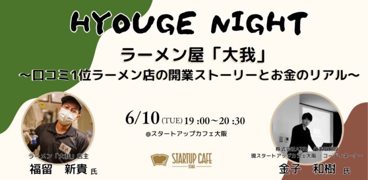 【終了】【HYOUGE NIGHT】ラーメン屋「大我」~口コミ1位ラーメン店の開業ストーリーとお金のリアル~