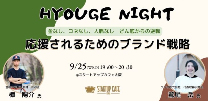 【終了】【HYOUGE NIGHT】金なし、コネなし、人脈なし どん底からの逆転 応援されるためのブランド戦略
