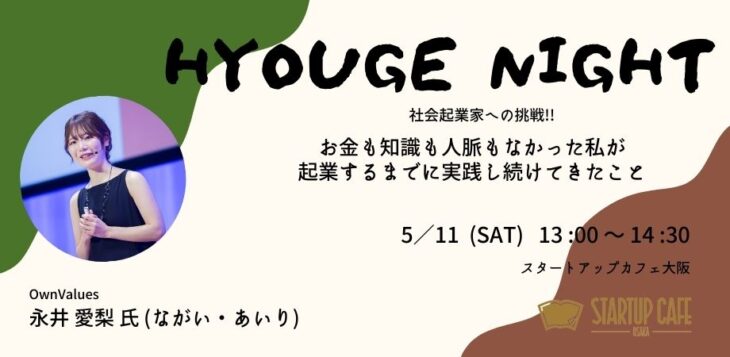【終了】【HYOUGE NIGHT】社会起業家への挑戦!! お金も知識も人脈もなかった私が起業するまでに実践し続けてきたこと